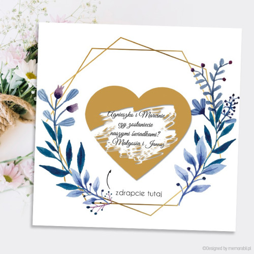 Zostaniecie naszymi świadkami - kwiaty geometryczny kształt - kartka zdrapka