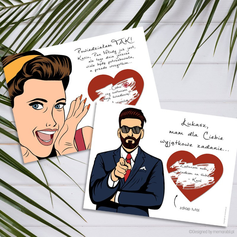 Zostaniesz moją świadkową / świadkiem postacie retro - kartka zdrapka