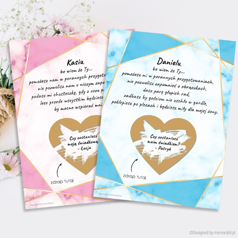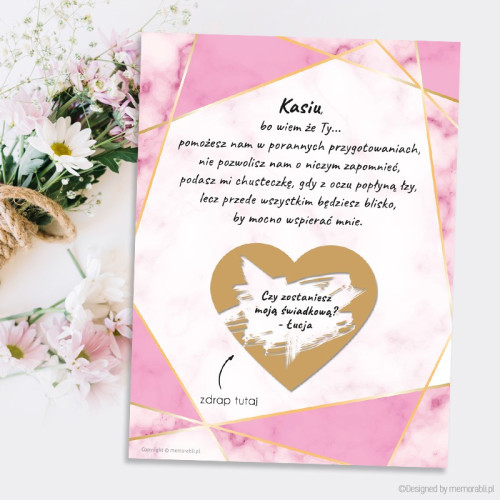 Zostaniesz moją świadkową / świadkiem marmur różowy i niebieski - kartka zdrapka