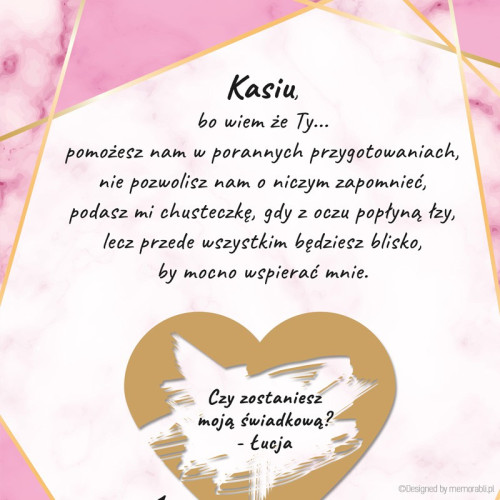 Kartka "Czy zostaniesz moją świadkową" będzie bardzo miłą niespodzianką dla Twojej przyjaciółki.