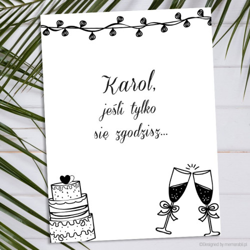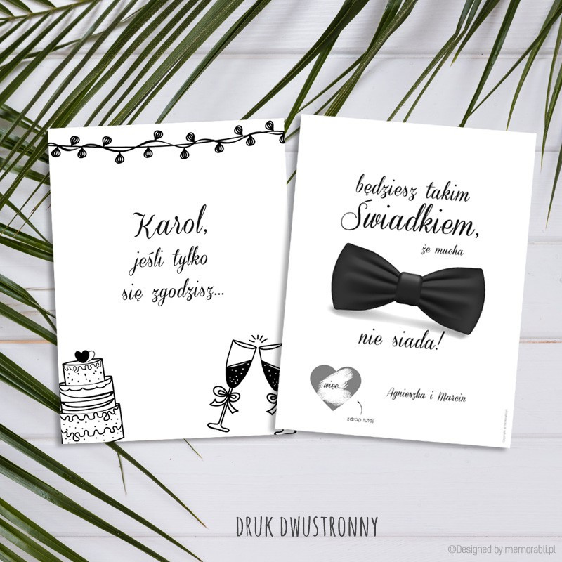 Zadaj najważniejsze pytanie bliskiej osobie w oryginalny sposób. Czy zostaniesz moim świadkiem? Spersonalizowana kartka ze zdrapką będą bardzo miłą niespodzianką dla Twojego kumpla.