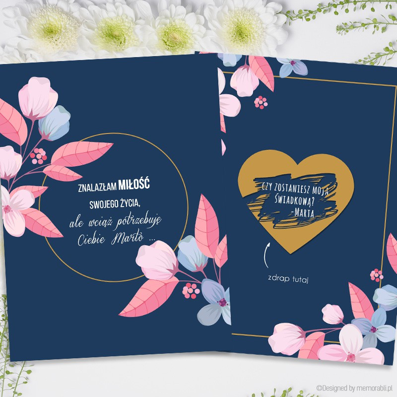 Zostaniesz moją świadkową / świadkiem kwiaty akwarela - kartka zdrapka