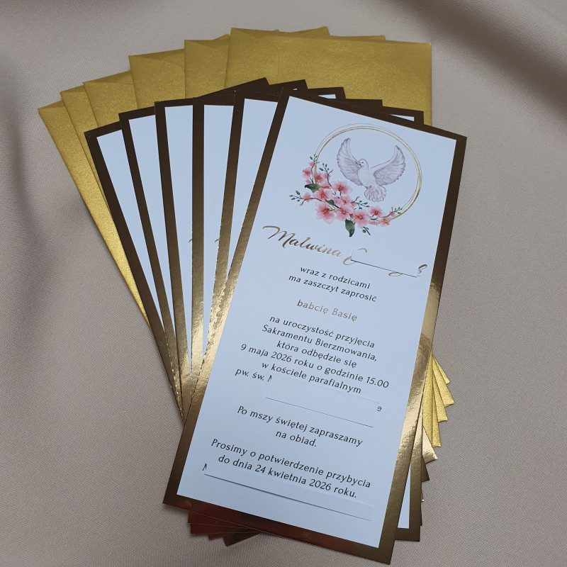 Zaproszenie złota tafla Bierzmowanie Gołębica