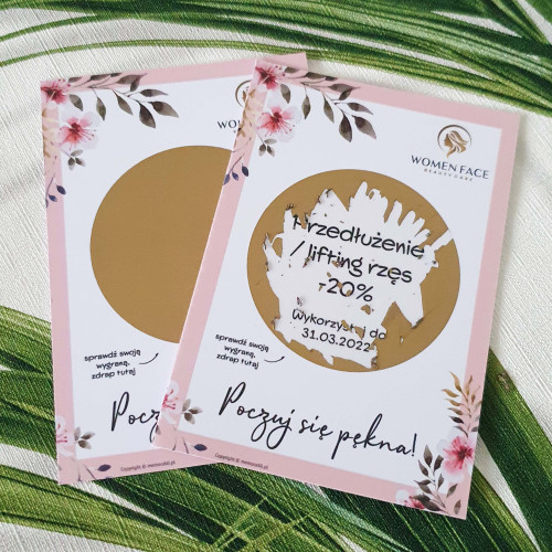 Ulotki Zdrapki bileciki promocja firmy salonu 300x