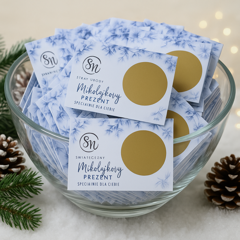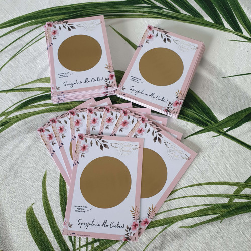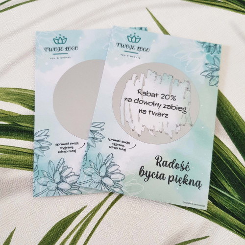 Bileciki ze zdrapkami przygotowywane są specjalnie pod Twoje wytyczne, aby całość komponowała się z Twoją marką (Twoje LOGO i KOLORYSTYKA)
